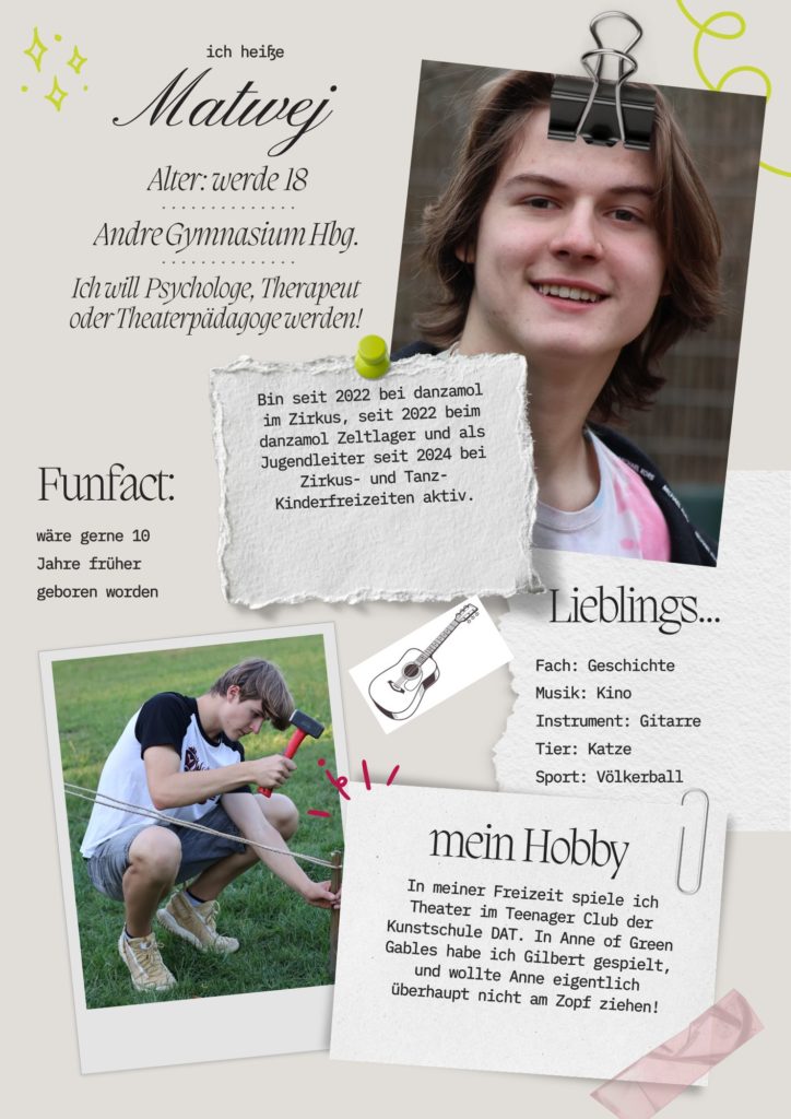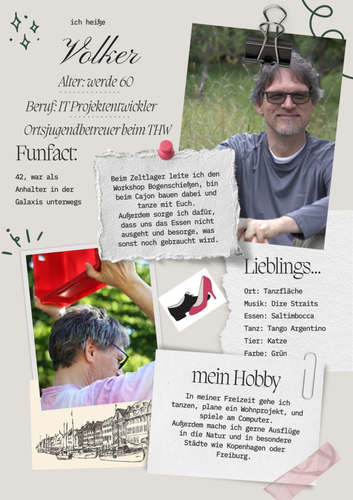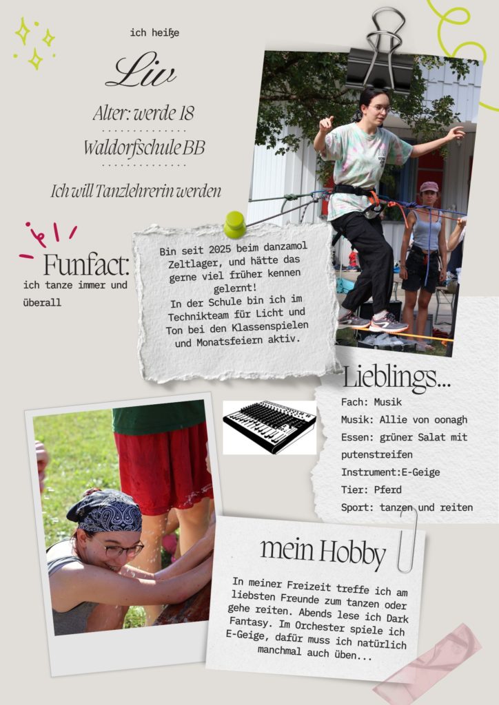 Unser Leitungsteam besteht 2026 aus einer Handvoll Jugendlichen und jungen Erwachsenen, die in den letzten Jahren beim danzamol Zeltlager so viel Spaß miteinander hatten, das sie jetzt Jüngeren ähnlich großartige Erlebnisse ermöglichen wollen. Pierrick Nzoungani, Heidi und Volker Pussel – bisherige Leiter – sind als Coaches, Workshopleiter und für Organisation und Verwaltung dabei.